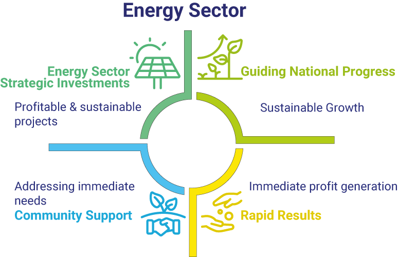 The ENERGY SECTOR — Investing in renewable and sustainable energy has become crucial for Financial Power Ltd. Projects such as solar and wind plants not only generate profits but also help promote environmental sustainability. Such investments can enhance the bank’s reputation and attract socially responsible investors. In this perspective, Financial Power Ltd has the task of identifying, through private actors, strategies for the state-driven development of sectors of public and private interest, generating innovations for the benefit of social life, employment and the economy. The structuring of these investments does not limit the Bank to merely building infrastructure — it also provides innovative solutions for social life, guaranteeing communities access to clean and secure resources, and actively fostering the creation of specialised jobs along the green supply chain. Ultimately, private capital is directed to serve national objectives, becoming a fundamental driver of growth for the entire economy and, consequently, of commercial pre-eminence.
